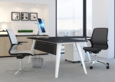 Features such as floating tops, curved modesty panels, supporting pedestals mix style and purpose to produce desking that sits well in both open plan and public facing areas.